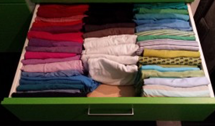 If you have drawers with clothes in them, don’t stack the clothes on top of one another, rather fold them tighter and place them side by side.